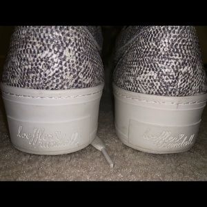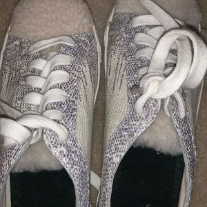 Sneakers with a little platform. Fur shoe tongue and snake skin leather outside of the shoe