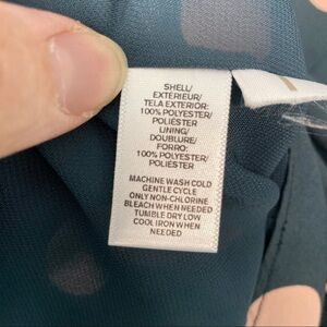 Crew neckline drop waist dress by Ann Taylor Loft. Size S. Flutter sleeves, key hole button closure in back, fully lined. Petrol gray with blush pink polka dots. Style # 406567. 100% polyester. Machine wash, tumble dry. In excellent, pre-owned condition. Measurements taken flat: pit to pit: 18", waist: 18", hip: 18", shoulder to hem length: 35".