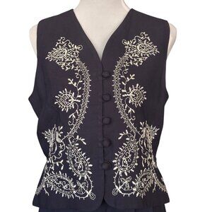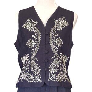 lois snyder dani max vintage navy blue paisley button up vest Boho Women's sz 10