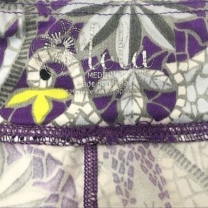 Colorful exercise leggings by Lola by AFG. Beautiful colors. Purple, gray, white, black and yellow.