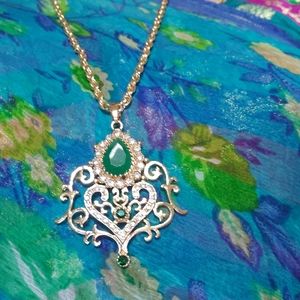 Brand new green stone long gold chain with pendant chain indian Pakistani jewelry