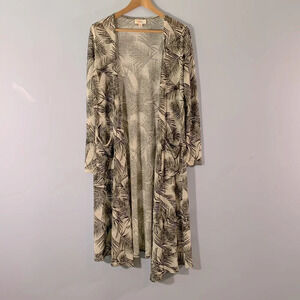 long line sheer duster open cardigan gray palm fronds size small Sara swim cover