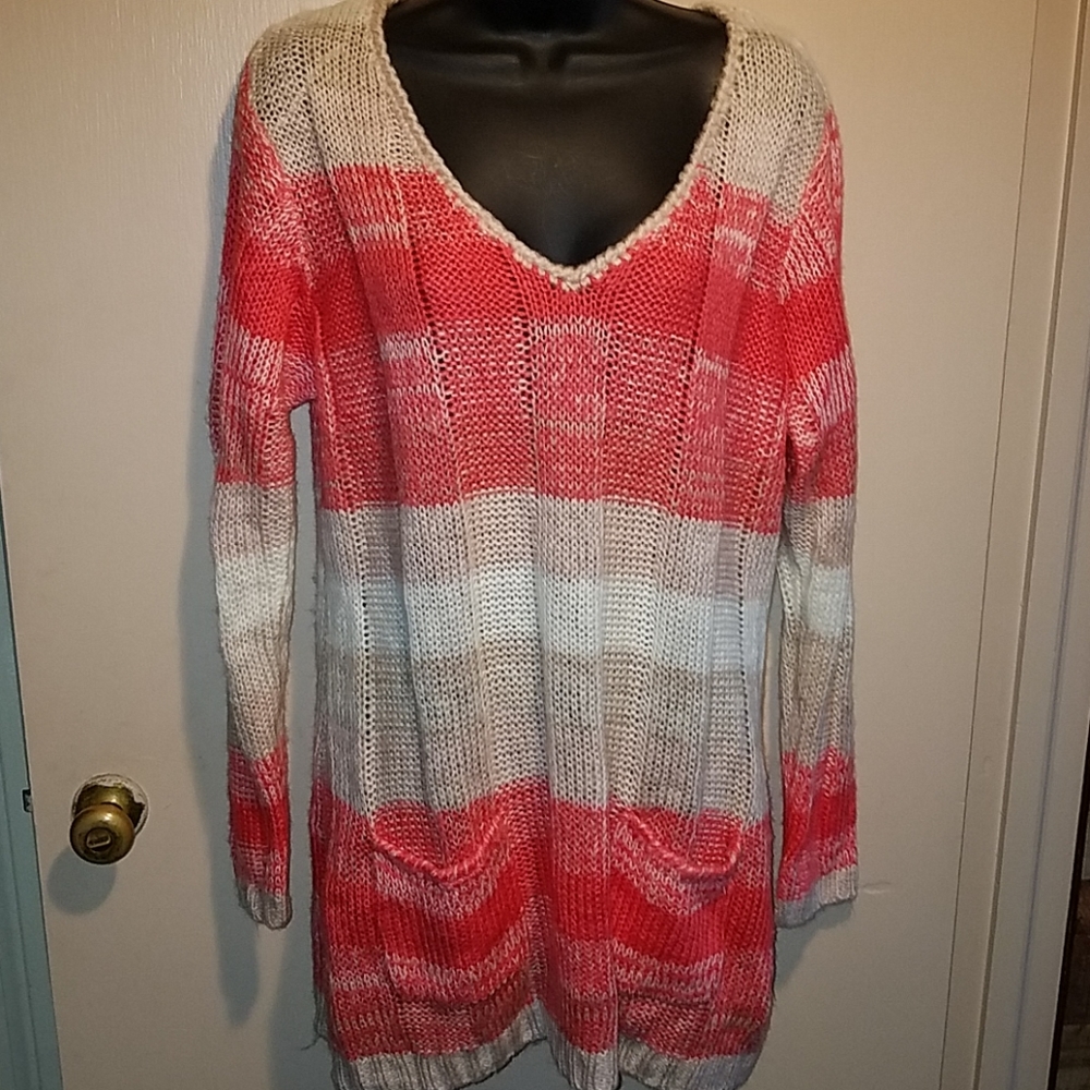 long pullover sweater has 2 pockets on the front size 2X