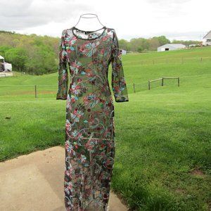 the dress has long sleeves bust 16 x2, 57" long very sexy, zipper on the side