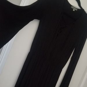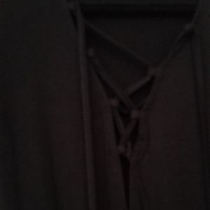 never worn. Cinches at the waist, sleeves fan out, and criss cross ties at chest