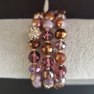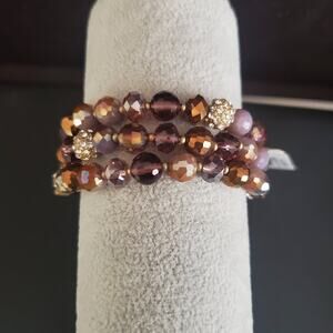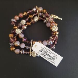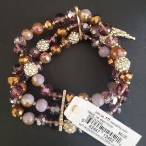 Lonna & Lilly stretch bracelet has brown and purple beads with a feather charm. New With Tags