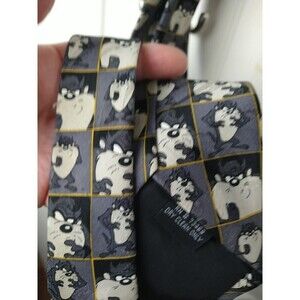 looney tunes tasmanian devil Grey Yellow Lined Tie 60"