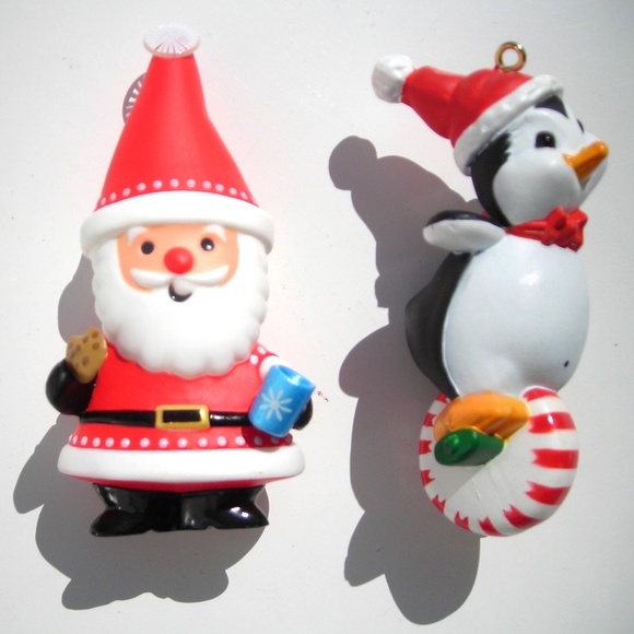 🦋 lot 2 Hallmark Christmas ornaments Santa Cookies Cocoa & Penguin Peppermint