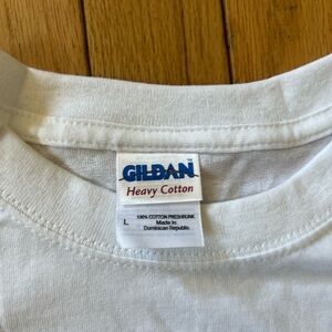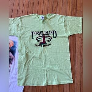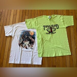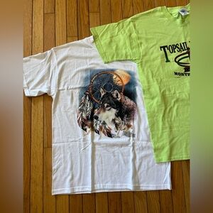 lot of 2 heavy cotton t-shirts Men’s Large Wolf Indian NC Top Soil Beach NWOT