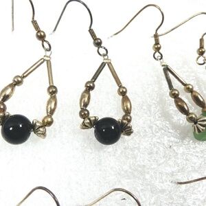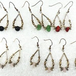 This is a lot of 6 pairs of handcrafted earrings. Made of liquid silver and genuine stone nuggets (Rose quartz, Red Jasper, Green Aventurine) and round (Black Onyx) beads.