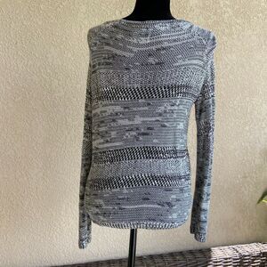 lou & grey Womens Sweater Sz Medium Black White Pullover Open Weave Reverse Knit