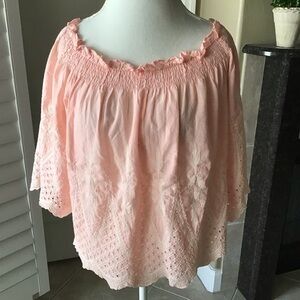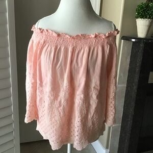 love J Off Shoulder Eyelet Blouse X-LARGE Cropped Coral Pink 100% Cotton Romantic. 100% cotton, lightweight, romantic blouse can be worn on or off the shoulder.