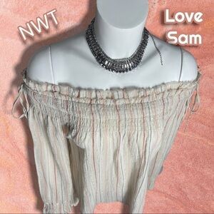 love Sam Smocked Off the Shoulder with Tassels Boho Top Size Extra Small