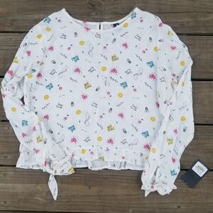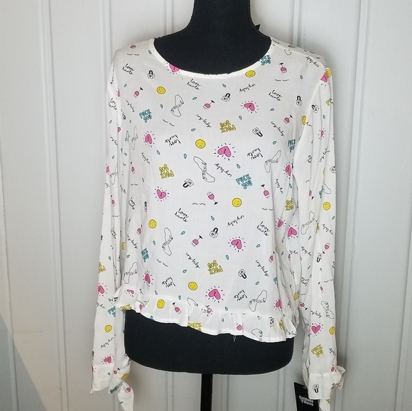 Cuidado con el perro love hurts cry baby top size large top has ruffle bottom tie sleeves there is a bad word in top please see pictures top rums small please measure measurement of length from the top of the shoulder to the bottom of top 20 armpit to armpit 20 perfect break up shirt note there is too small tag holes see picture top is a statement top for sure SKU t201