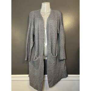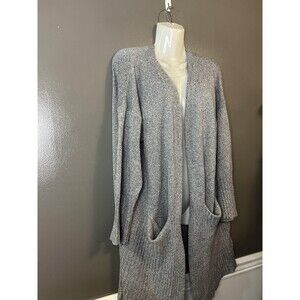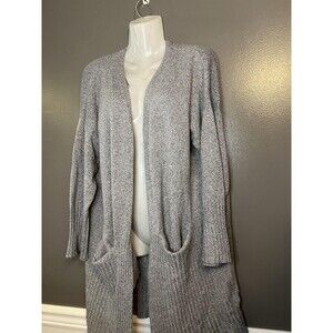 lovemarks Cardigan Sweater Womens Medium Gray Open Front Longline Duster Pockets