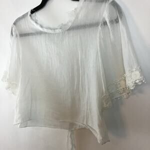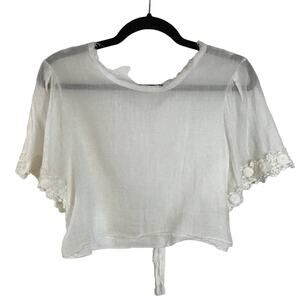 loveshackfancy sheer white cotton short sleeve crop top small