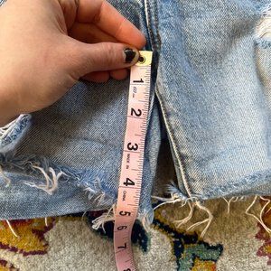 low-rise Levi's 501 Selvedge White Oak distressed denim shorts, W25