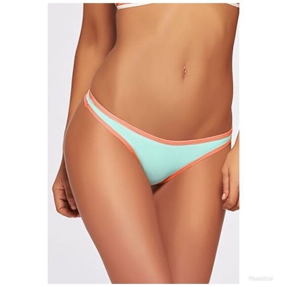 l*space Cosmo color block bikini bottoms with slightly cheeky coverage in seaglass neon orange