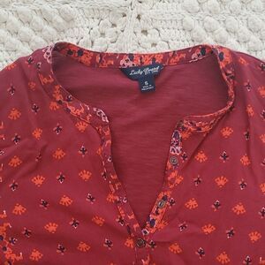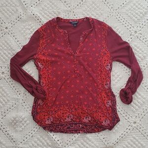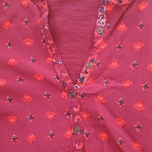Beautiful Boho red & orange top with 3/4 rolled up sleeves