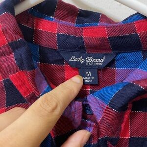 lucky brand plaid blouse with silver string detail women’s medium