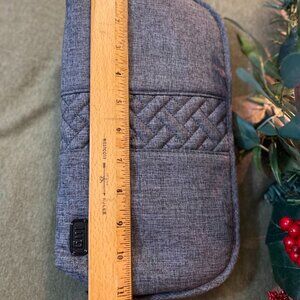 Brush Holder has 5 pcokets with zipper closure. Large cosmetic bag with 2 zipper pockets and zipper closure.