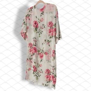 lularoe Rare off White Coral Pink Roses Kimono Fits Sizes 10-18 (Med)Cover Up