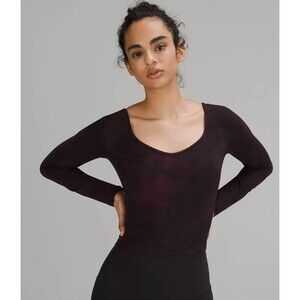 lululemon Align Cropped Long Sleeve Shirt Diamond Dye Cassis Black Size 10