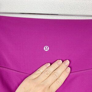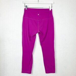 Align high rise crop in vivid plum by lululemon. Nulu material. One inner waistband pocket. Light discoloration on front left leg.