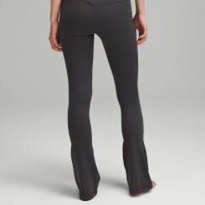 So buttery soft, it feels weightless.Four-way stretch.Sweat-wicking.Hugs your body from waist to knee.Back drop-in pocket .Flares out subtlety from the knee to hem.32" inseam.Size 6.Black.In very good condition.