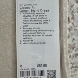 lululemon Classic Fit Cotton Blend Sleeveless Dress Beige Raw Linen Size 8 New with Tag