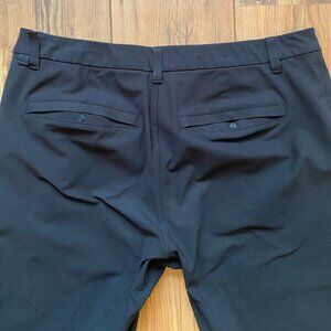 The classic commission pant from lululemon in black. The only issue with these pants is one of the belt loops has come partly undone (see photos), but could be sewn back on pretty easily. Other than that, they are in great condition. Size 34W x 32L. Please see details/description from lululemon's website below.