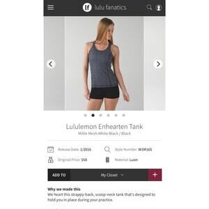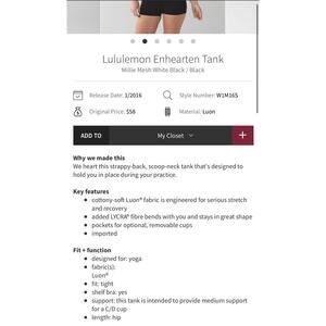 womens sz 6 EUC Lululemon Enhearten tank top. bra pads not included. measurements are approximate taken laying flat