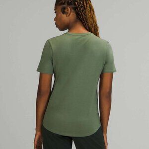 lululemon Love Tee Crew size 4/6 Color is Green Twill - Lighting was a little dark day photos were taken and shirt does not appear as green as in natural light. Very Good pre-owned condition. No flaws or call outs other then a small bit of wash wear No rip tag. Size is estimated based on measurements and fit. PTP is 18.5" Please double check your measurements prior to purchasing. Pima Cotton fabric is breathable and soft against your skin • Designed for: On the Move • Added Lycra® fiber for shape retention • Classic fit, hip length