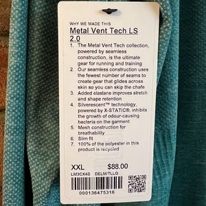 lululemon Metal Vent Tech Long Sleeve 2.0 Pullover in DELM/Teal Lagoon Size XXL