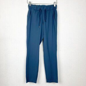 On the fly 7/8 pant in code blue by lululemon. Full-on-luxtreme material. Medium rise. Drawcord. Two front pockets.