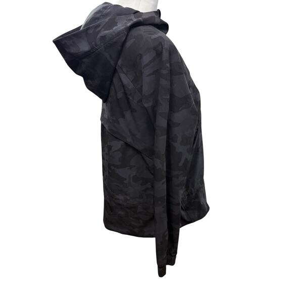 Lululemon Pack It Up Jacket Water Wind Resistant Lightweight Unlined Hooded Vented Camo Size 2 in excellent condition with no signs of wear.