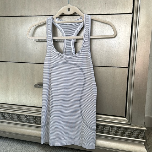 Size 4 black and white striped, barely worn lululemon Tank top!