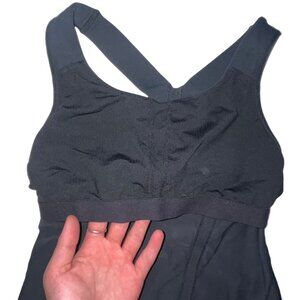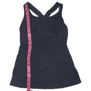 Black racerback lululemon fitted & flared tank with built-in bra (no pads). Tags cut out, measurements shown in pictures. Very good condition. Smoke free home