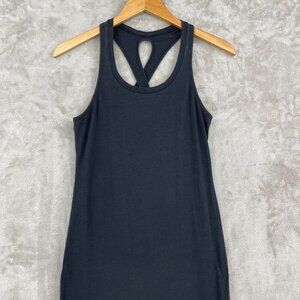 lululemon Restore & Revitalize Dress in black. Racerback/ criss cross design, side slits. Material is a lightweight Pima cotton blend jersey. Size 4 based on measurements & size chart included in photos as size tag has been removed. Please see photos for measurements.