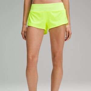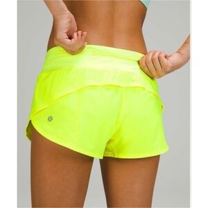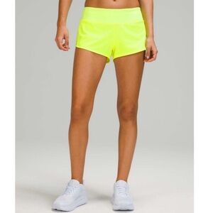Lululemon Athletica Speed Up Low-Rise Lined Short 2.5" in Bright Yellow. Great Running or Gym Shorts. Lightweight, back zip pocket, interior cinch tie