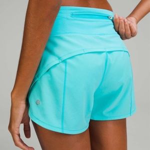 NWT lululemon Speed Up MR Short 4" in retired color Electric Turquoise (ELTU)! Included online photos for color reference