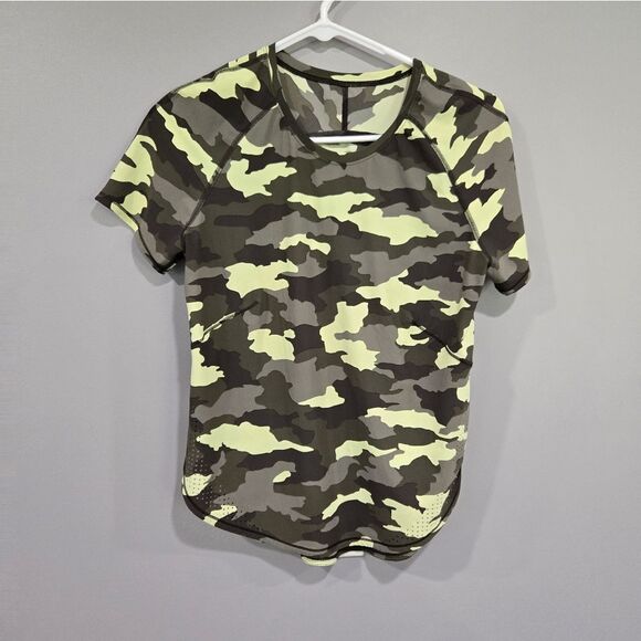 Lululemon Run SS Camo Green Short Sleeve Running Shirt Yoga.