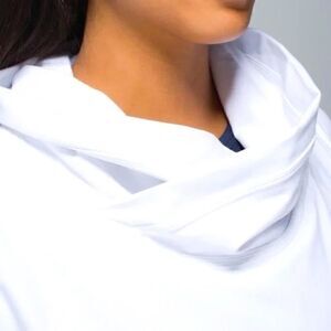 Sometimes trying to get a tight shirt over sticky, post-yoga skin can create some awkward moments in the locker room. We designed this warm, buttery-soft pullover with a slim fit so we can we can easily get it on, skip the shower lines and head on home.