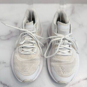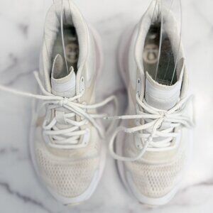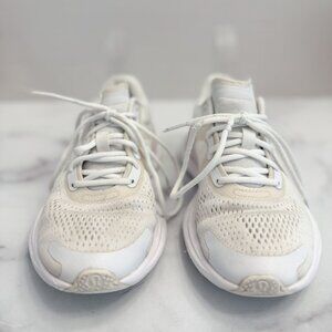 In good used condition - lululemon Women's Blissfeel Running Shoe in white/white/white, size 5. Worn by my 9 year old as her cheerleading shoes; these are clean and ready for wear. Please see photos for details.