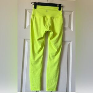 Lululemon Bright neon yellow leggings. Great preowned condition gently used no flaws. Sleek and comfortable design. Perfect for workouts.