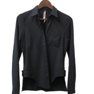 Sleek black button down shirt. Classic collar. Long sleeves. Perfect for versatile styling.