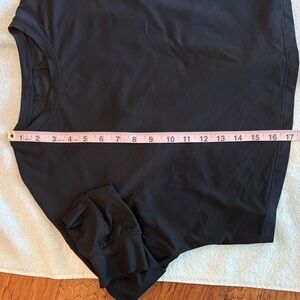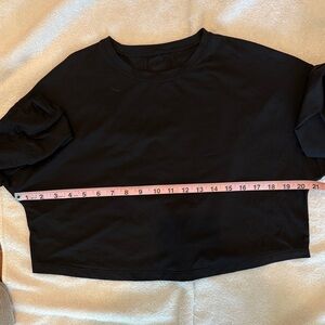 Stylish black crop top. Long sleeves. Perfect for casual wear. Excellent condition. Non-smoking home. Measurements shown for sizing.