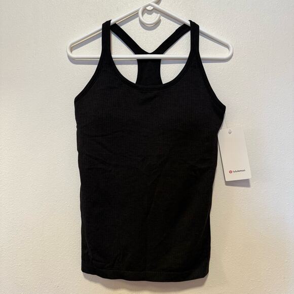 lululemon athletica Black Fitted Tank Top Ebb to street tank sz 10 built in bra