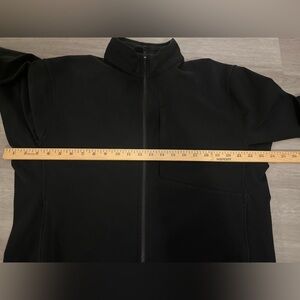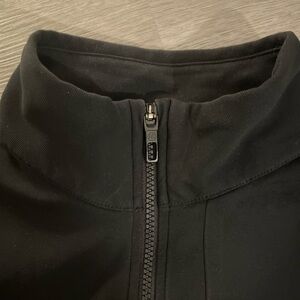 Sleek black jacket with full zip. High collar design. Perfect for casual wear.