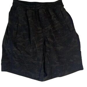 Men's athletic shorts with a subtle black pattern. Ideal for workouts and casual wear. 31” waist , and 9.5” inseam. Lined.